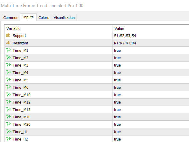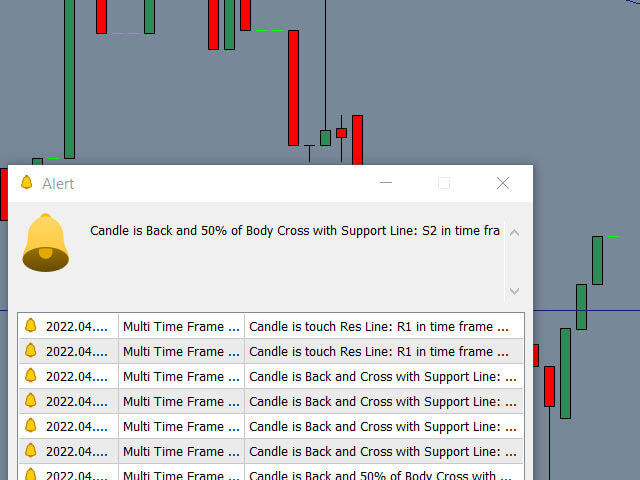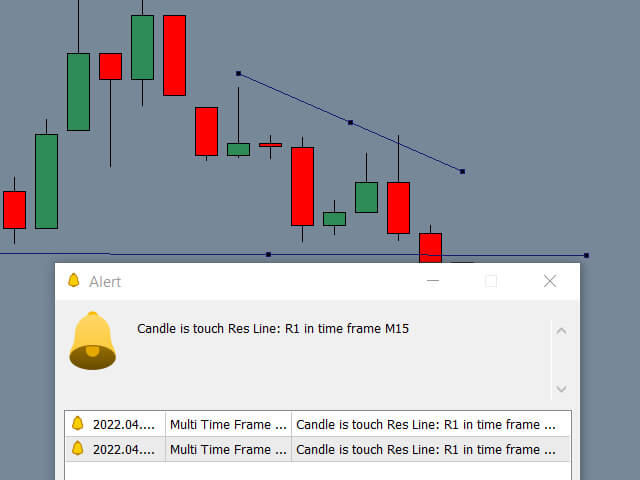 Introducing Multi Time Frame Trend Line Alert Pro Precise Trendline Monitoring – Across All Timeframes The Multi Time Frame Trend Line Alert Pro indicator allows you to draw as many support and resistance lines as you need and track price reactions to them across multiple timeframes. With flexible input settings and smart multi-type alerts, you'll never miss a key price interaction — even when you're away from your desk! ✅ Key Features: 🔹 Custom User-Defined Trendlines Simply enter the names of your support and resistance lines in the "Support" and "Resistant" fields on the Input page, separating each with a semicolon (“;”). There's no limit on how many lines you can add. 🔹 Multi-Timeframe Collision Detection You can choose which timeframes to monitor for line interactions. Alerts are generated only after the candle closes on each selected timeframe, avoiding false signals during live movement. 🔹 Three Alert Types for Each Line: Candle touches the line Candle crosses the line Candle crosses the line with full body 🔹 Smartphone Notifications Get instant alert notifications directly on your mobile device — stay informed, even on the go. 💻 Available for: ✅ MetaTrader 4 ✅ MetaTrader 5 🎁 If you’re looking for a smart way to track key price levels across timeframes with customizable alerts, this indicator is the perfect tool for your strategy.